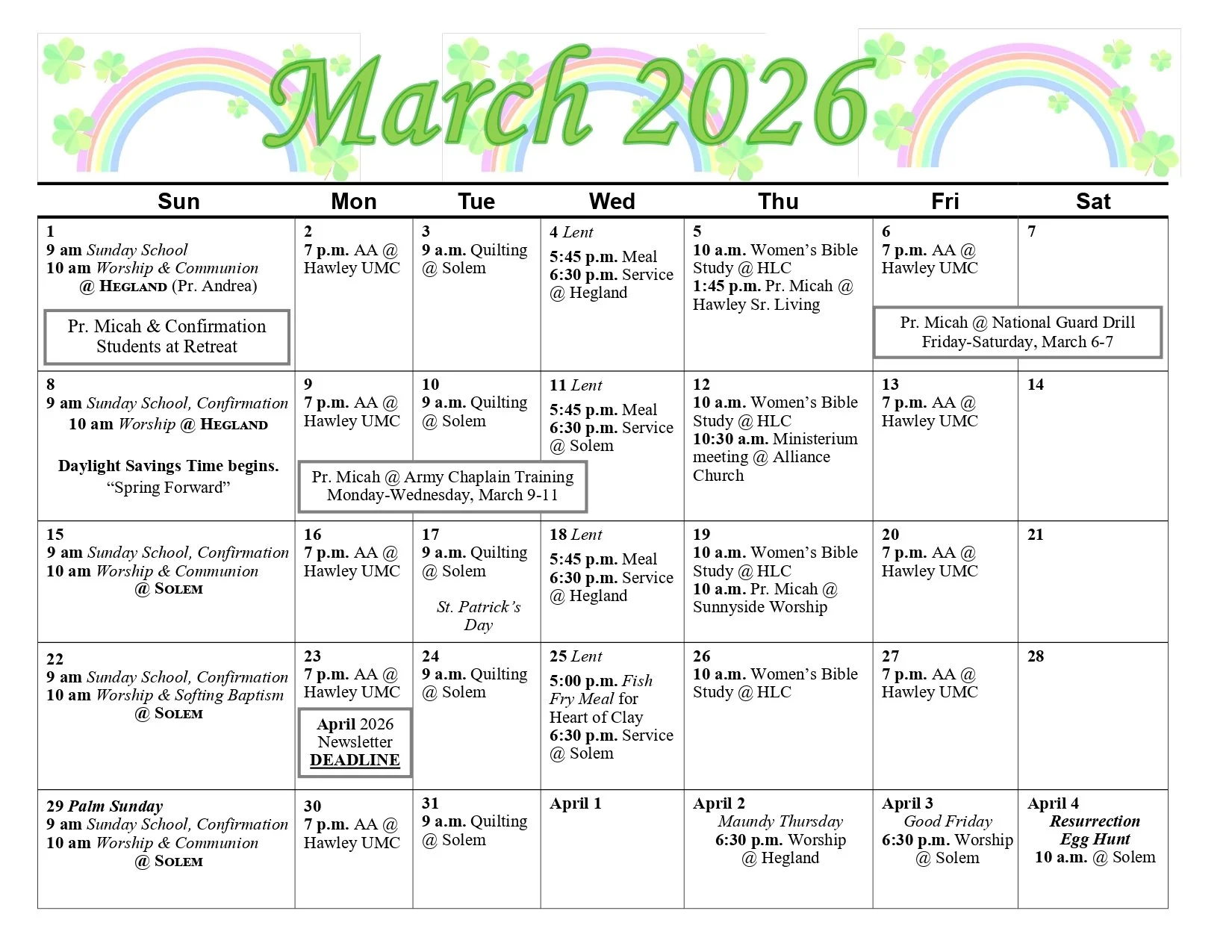 Please contact the Church Office or check our Facebook page to inquire about specific events.
